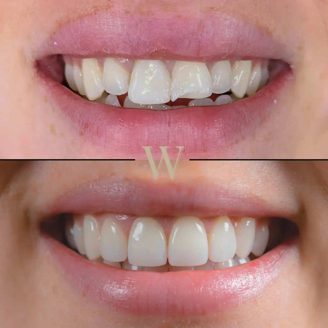 Like composite bonding, veneers can disguise chips, close small gaps, and improve the overall symmetry of your smile. The difference is that porcelain is stronger and more durable, often lasting over a decade with the right care. This makes veneers a popular choice for patients who want a more permanent solution with the same natural-looking results.